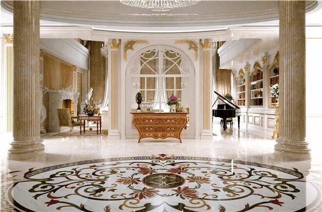除了这栋超奢华的样板房,其他别墅装修的奢华程度也都超乎想象,随便拿出一栋,内部精致华丽程度都堪比宫殿。比如这栋英国亚当风格别墅的内部装修,延续建筑亚当风格之外,点缀了少量中国元素,精致大器之余,又底蕴十足。