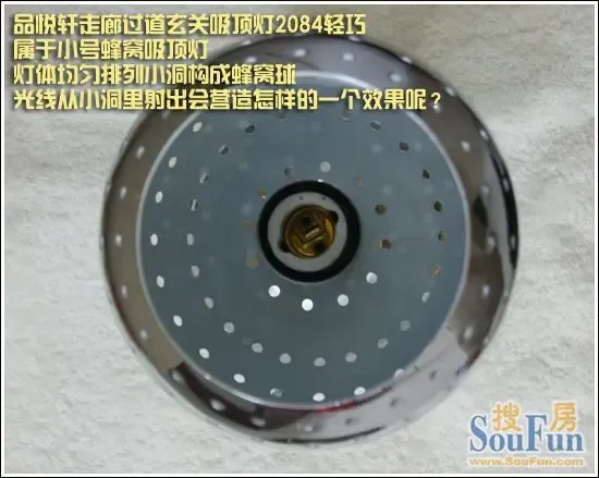 割手。除了均匀摆放的小孔好像和其他吸顶灯没有差异,而接通E14的光源后却有着超炫张扬的灯火效果,必是御宅族的独爱,没有地线但一点都不影响他的性价比。