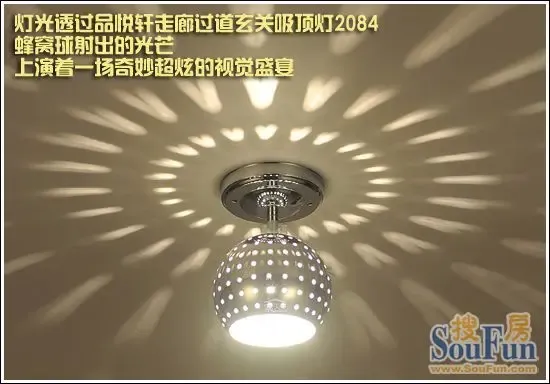 关于走廊的装饰,很多人都喜爱把吸顶灯嵌入走廊顶。而本期房全国修改测评的品悦轩走廊过道玄关吸顶灯2084恰好相反,其外形酷似酒杯,蜂窝球体均匀分布小孔,将光线散射出来演出非同一般的视觉盛宴,一同也适用于玄光或吧台的装饰,接下来让咱们来了解这款灯吧。